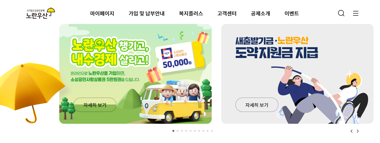 노란우산공제회 홈페이지의 대부분 서비스는 회원가입과 본인 인증이 필요합니다.